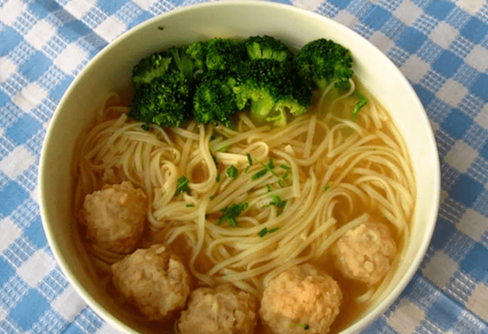 鲜虾200g、肉馅100g、面条200g、西兰花100g、鸡蛋1 个、盐适量、胡椒适量、生粉适量