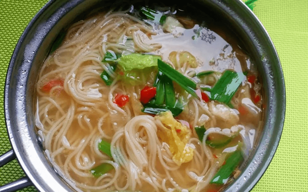 食材:龙须面200g、葱花适量、紫菜适量、虾皮适量、酱油两匙、陈醋2大匙、鸡精适量、辣椒油两匙、盐适量、胡椒粉少许、香油适量