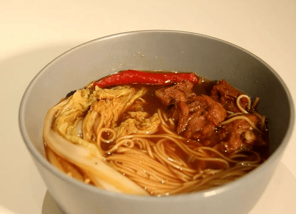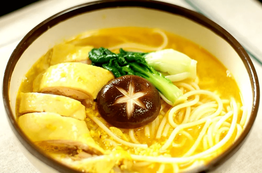 食材:鸡肉味浓汤宝1块、鸡大腿1只、面条适量、香菇、油菜、洋葱碎30克、蒜碎10克、姜碎10克、咖喱粉一小勺、椰汁1听、柠檬半个